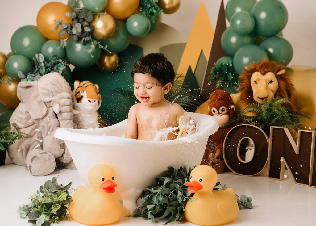 Portrait photos+ Cake smash photos + Bath Photos in cute bath tub