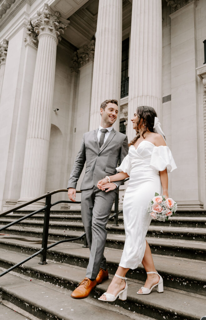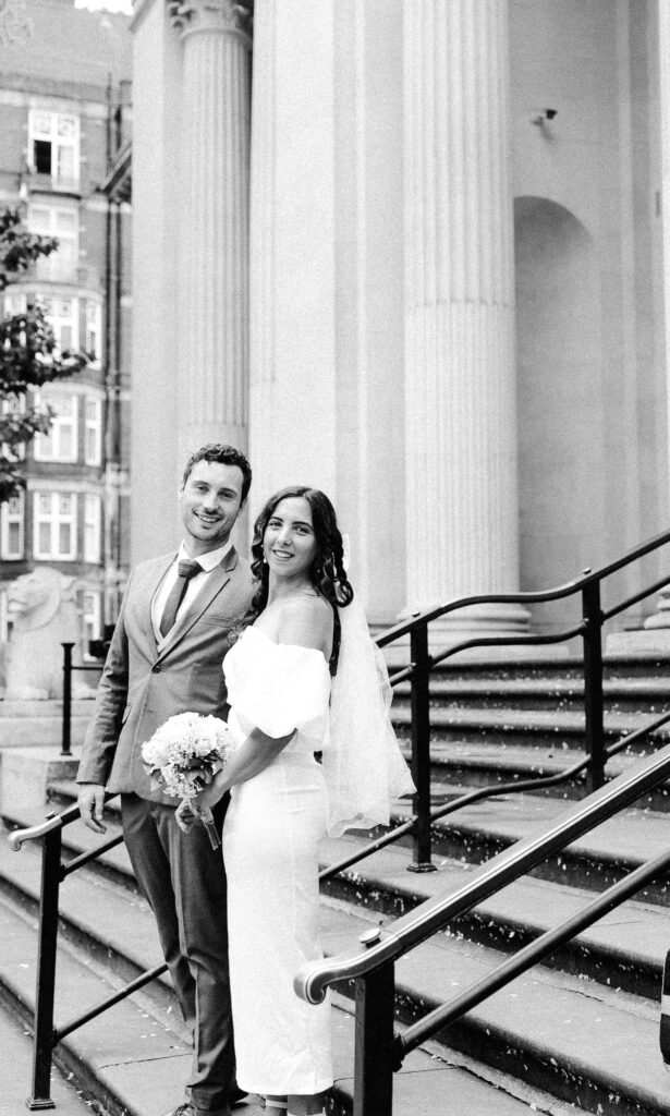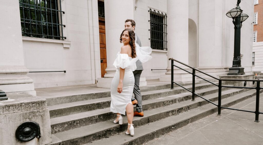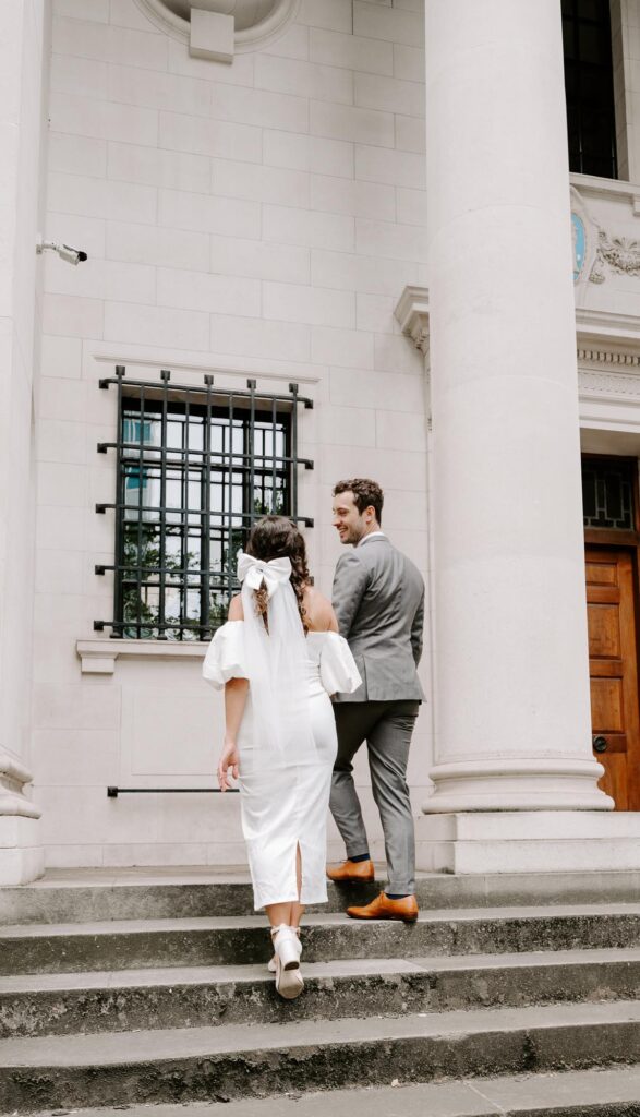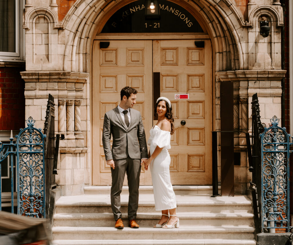Old Marylebone Town Hall is one of the best spots for a small London wedding. Its famous steps are perfect for fun confetti shots, and the beautiful building has lovely little corners for photos. Many well-known celebrities like Paul McCartney, Ringo Starr, and Liam Gallagher have tied the knot here, which makes it feel extra special.