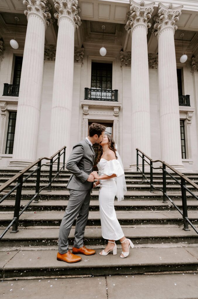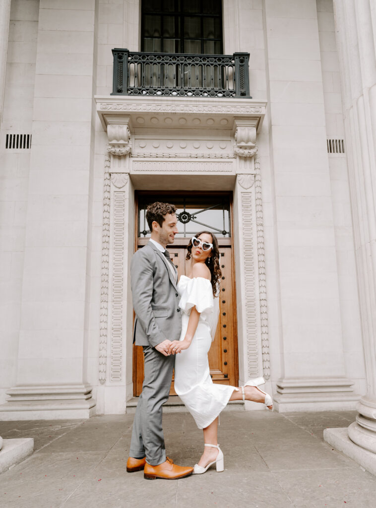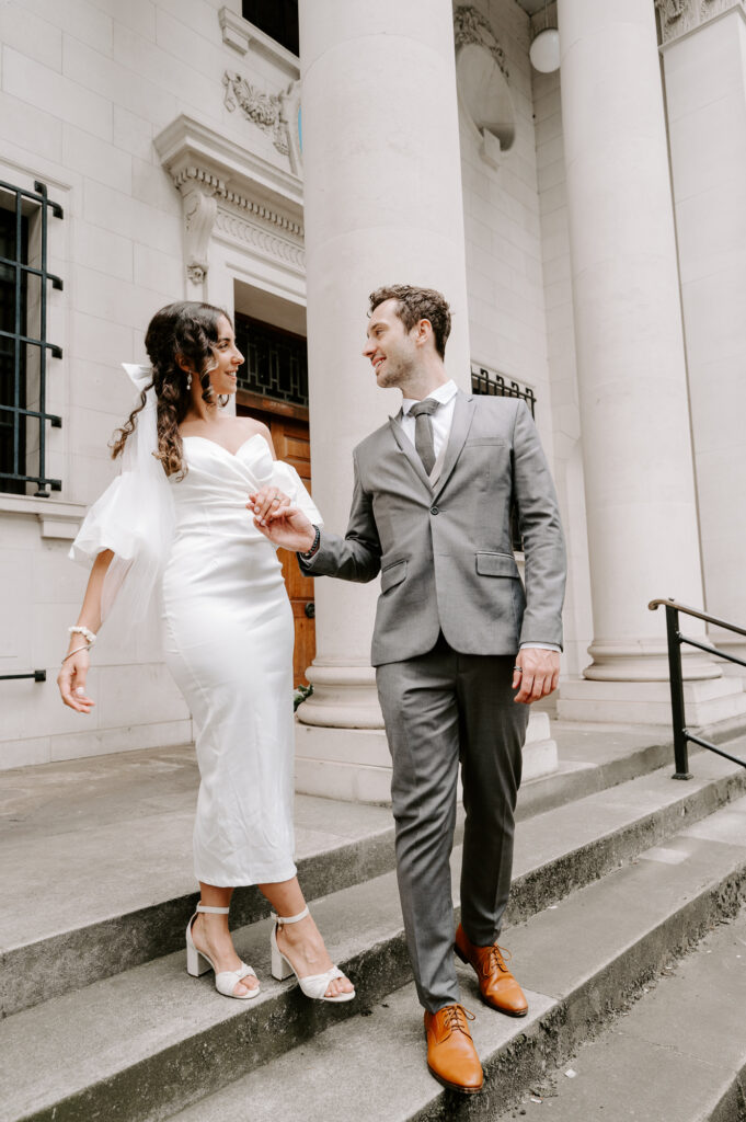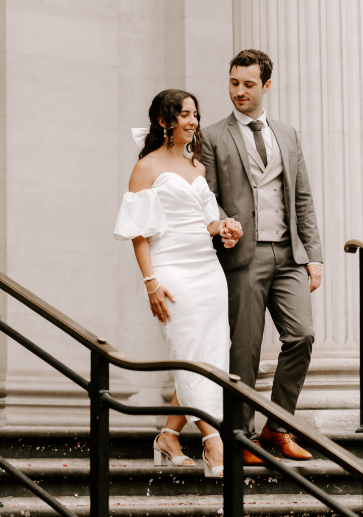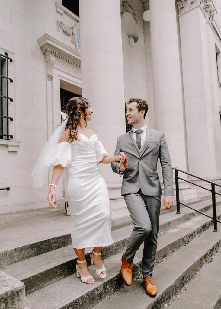 Old Marylebone Town Hall is one of the best spots for a small London wedding. Its famous steps are perfect for fun confetti shots, and the beautiful building has lovely little corners for photos. Many well-known celebrities like Paul McCartney, Ringo Starr, and Liam Gallagher have tied the knot here, which makes it feel extra special.