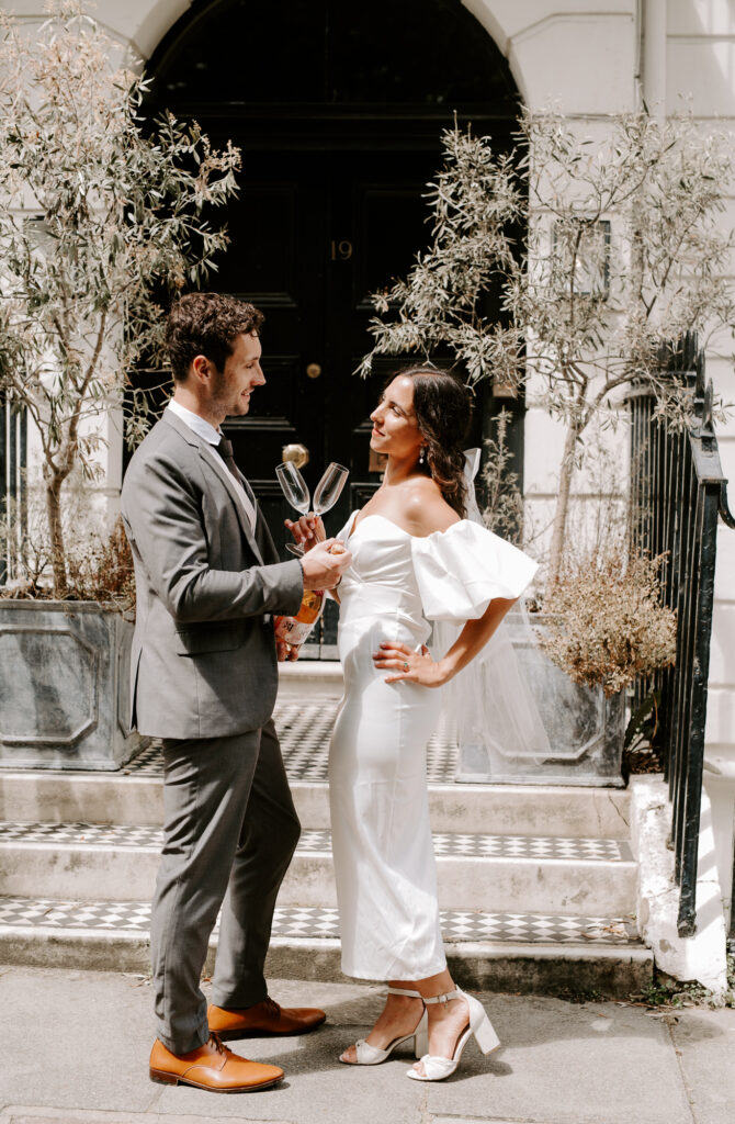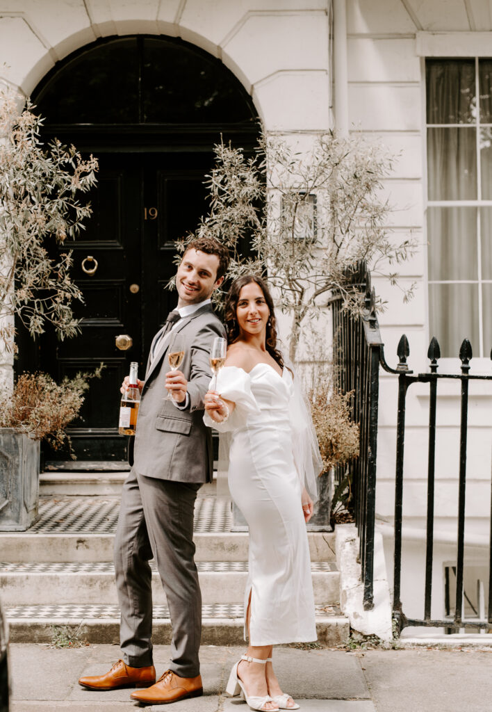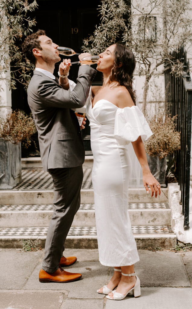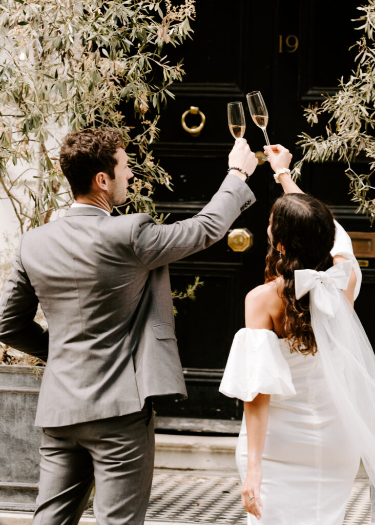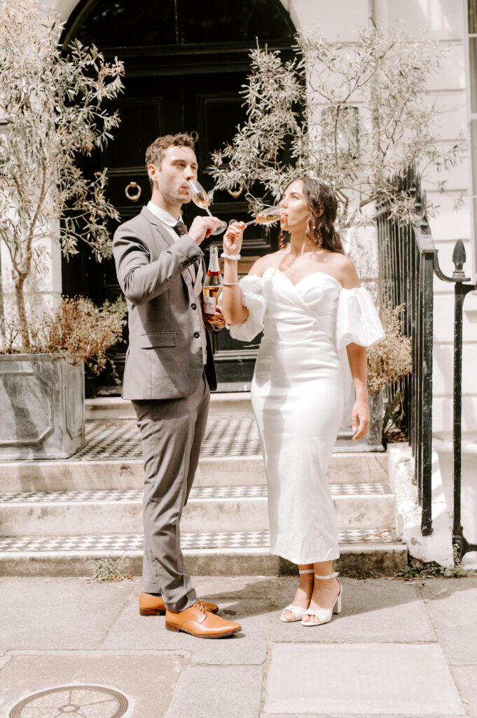 After the ceremony, we embraced a classic London moment—celebrating with a sprinkle of champagne and clinking glasses.