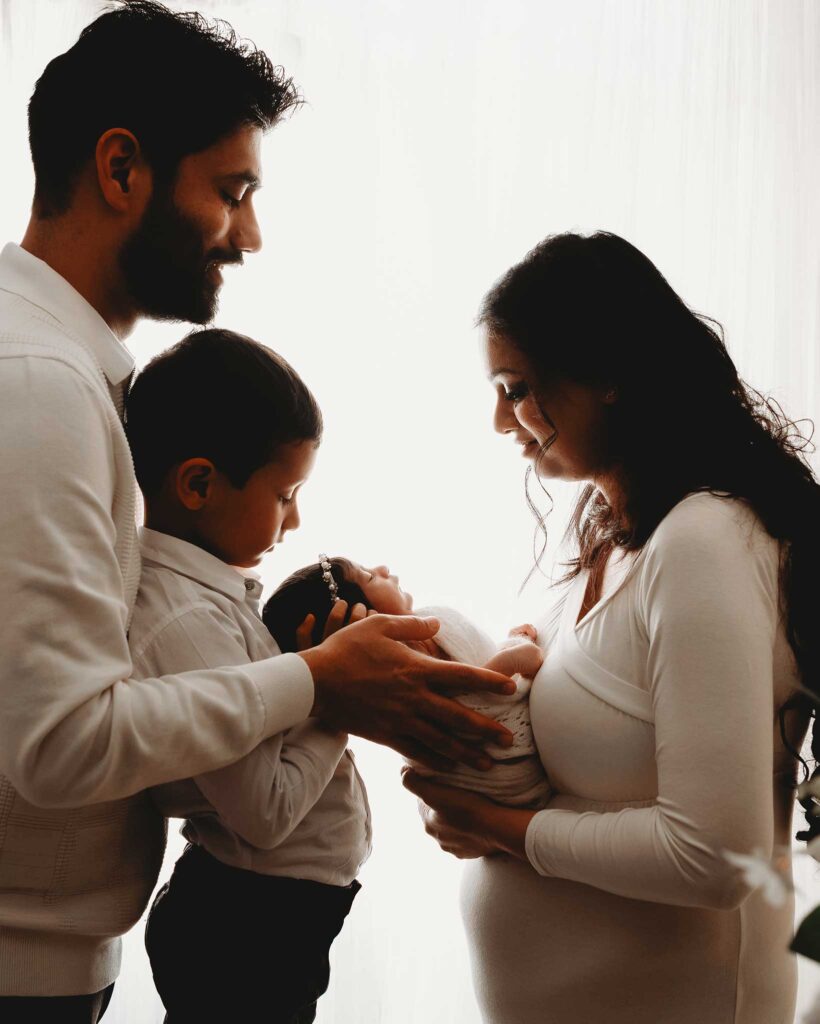 Photos with Siblings: Sibling photos are usually taken first, as little ones have limited patience—and that’s perfectly normal. A quick practice cuddle before the session can help them feel comfortable with the baby. Let them choose between two outfit options, keep snacks handy, and a little incentive or “reward” at the end can work wonders.