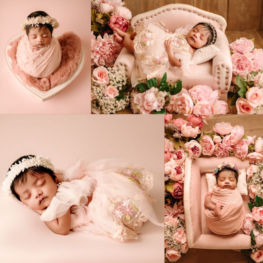 Kiara is such an adorable little one! For this session, her mama wanted a dreamy setting with all pinks, soft pastels, and delicate flowers. On the day of the shoot, Kiara was a bit more awake than expected and gave me a bit of a challenge during the posing. But with a little patience and some gentle coaxing, we managed to capture some truly beautiful and precious moments of her. The result is a collection of sweet, heartfelt photos that perfectly showcase Kiara’s charm and personality.