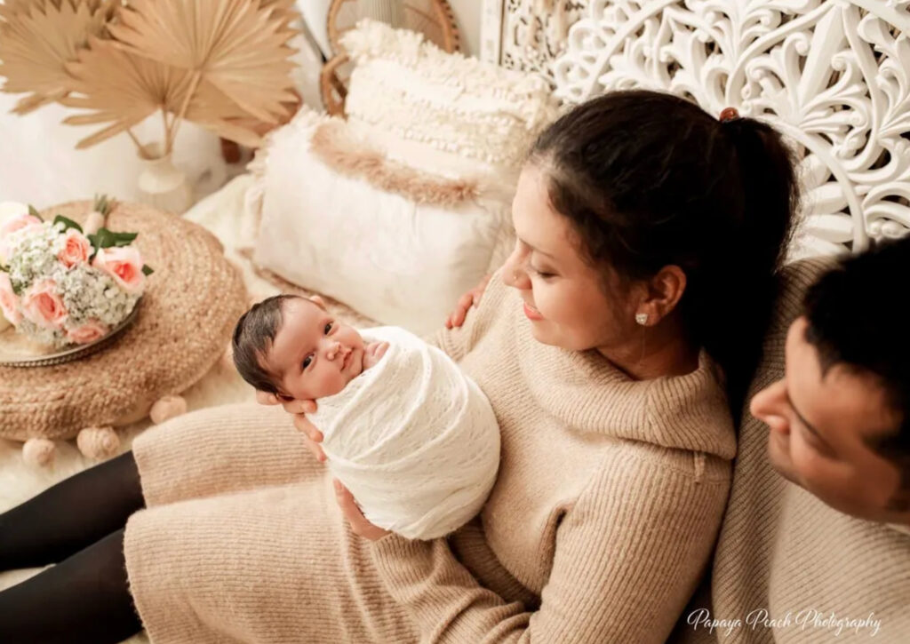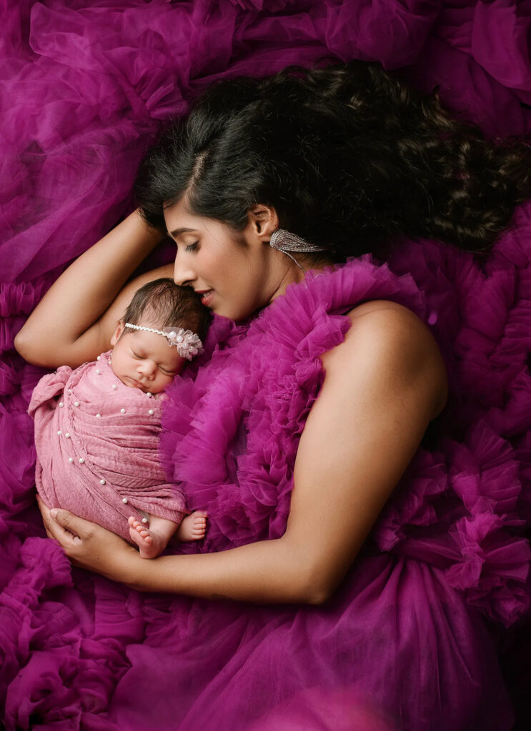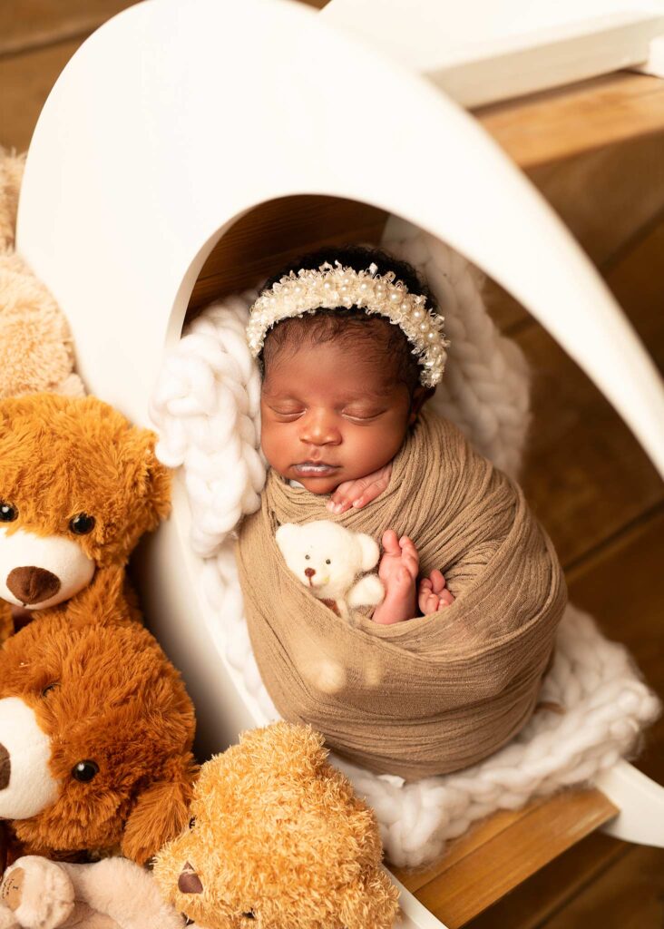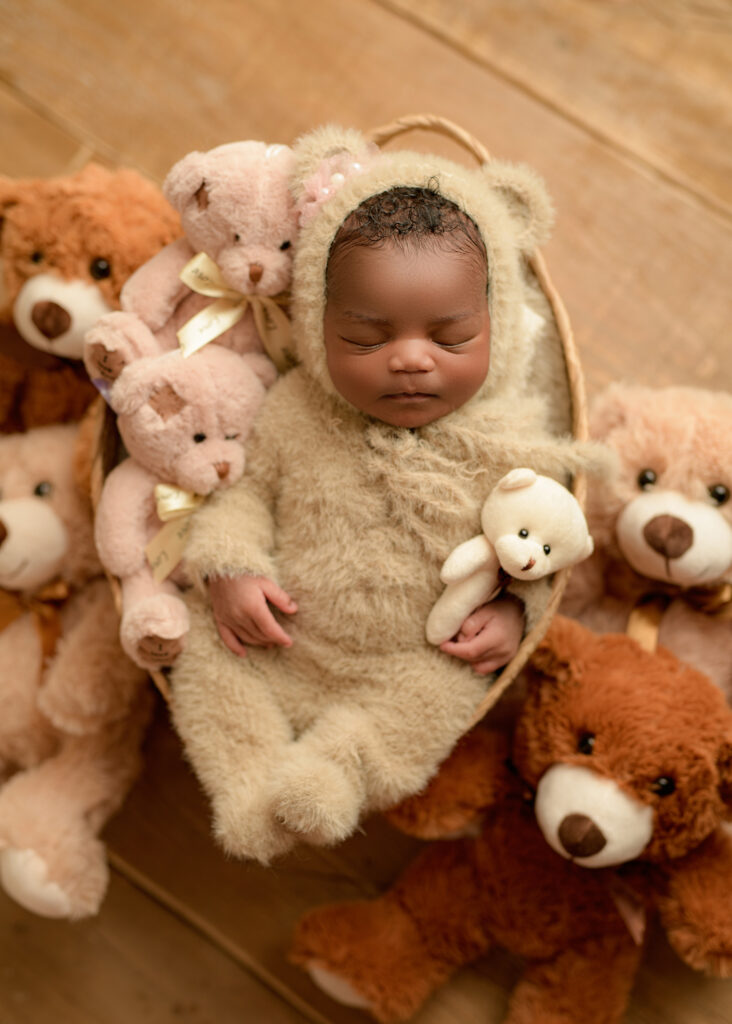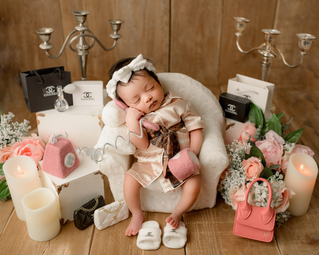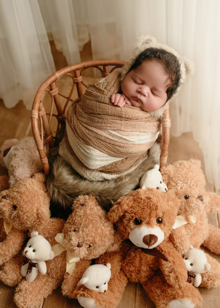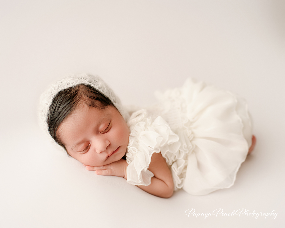 Newborn sessions are best scheduled within 5 – 21 days of birth when the baby is still very sleepy and fresh out of the womb, making them more easily moldable into those cute little poses that you’ve seen in my portfolio. This timing allows us to capture those beautiful, sleepy, curly poses.