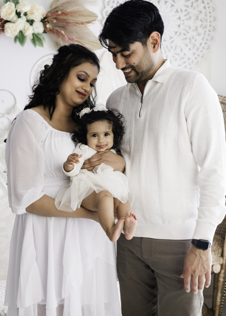 It honestly feels so special when I get to see families come back again and again. I first met this lovely family during their maternity shoot, then their newborn session—and now their little one is back for her sitter session. It really feels like being part of their journey.